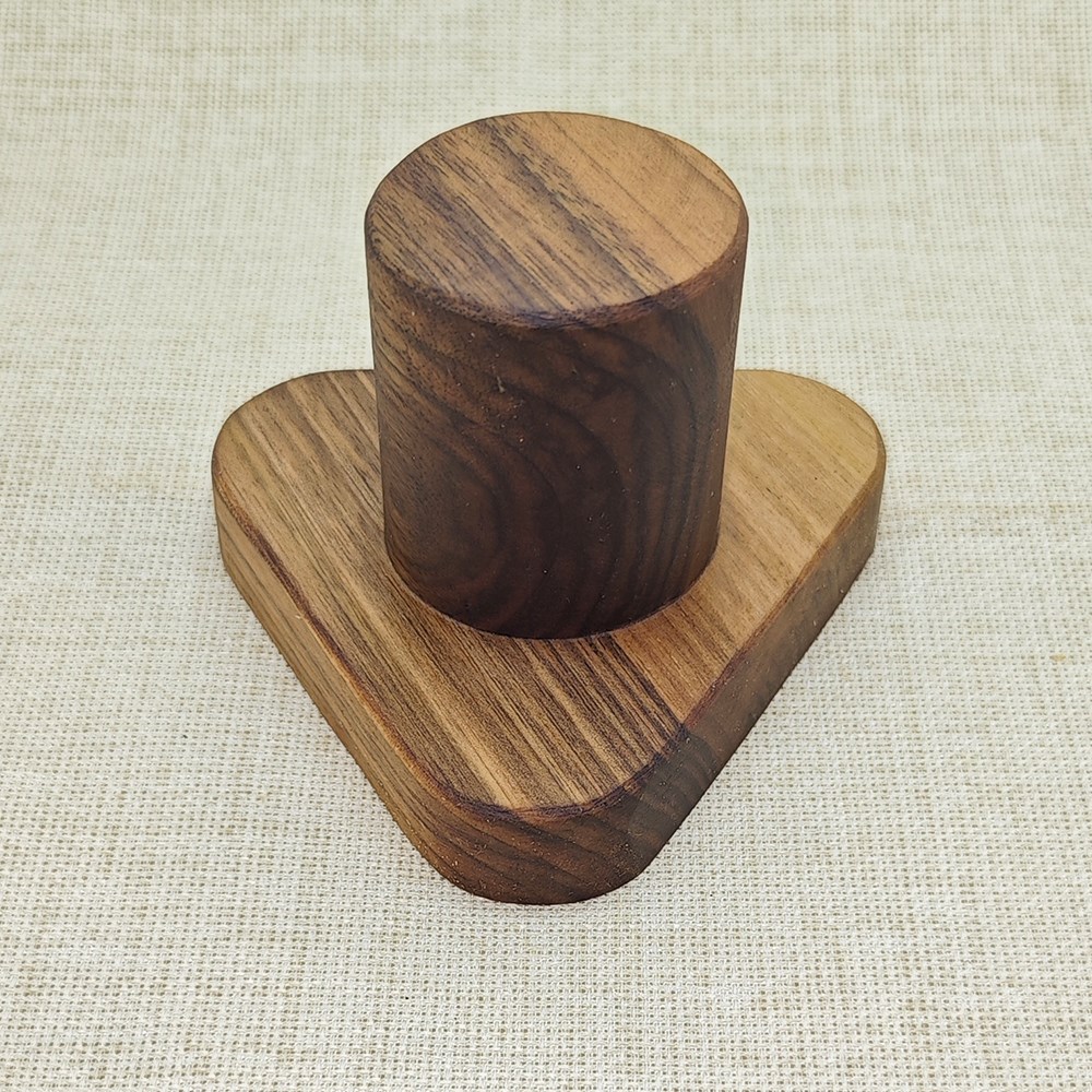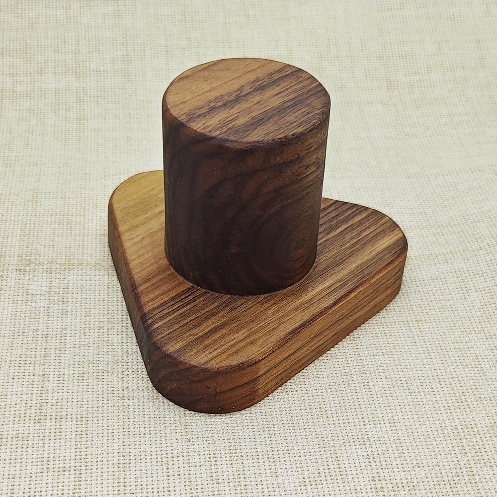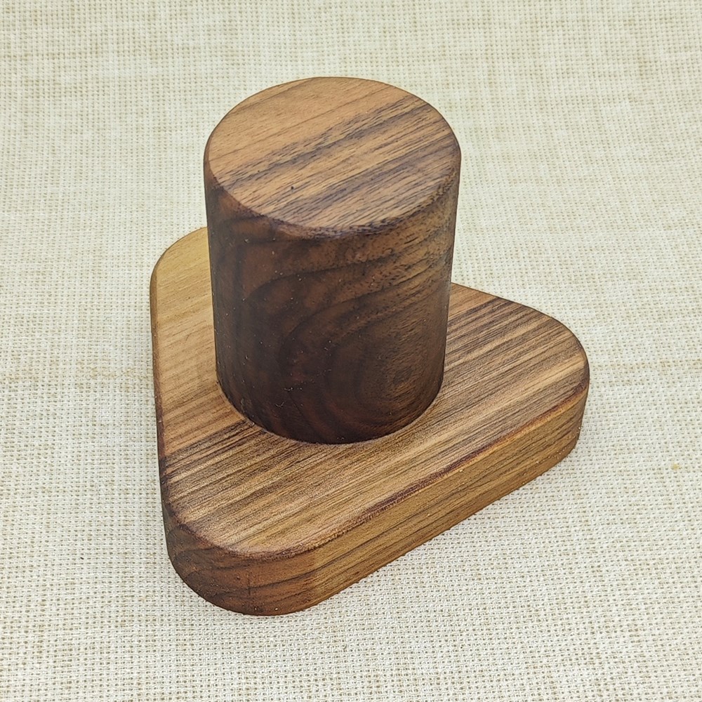 El yapımı ürünler her zaman özel bir anlam taşır. Bu ahşap saat standı, doğanın zarif dokusunu yaşam alanınıza taşıyarak şıklığı işlevsellikle birleştirir. Taban kısmı üçgen formlu, üst kısmı ise oval bir tasarıma sahiptir. 11,5 x 10,8 cm üçgen taban ve 5,5 x 5 cm oval üst kısım boyutlarında olup 6 cm yüksekliğindedir ve özenle ve hassasiyetle üretilmiştir. Kullanılan malzeme %100 masif ceviz ağacından yapılmıştır ve bu da ürüne dayanıklılık ve benzersiz bir doku kazandırır.