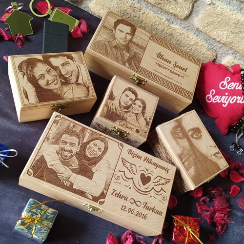 - Ahşap Kutu 9*18 cm ebatındadır. Üzerine işlenecek yazılar lazerle işlenmektedir ve ömür boyu kalıcıdır.