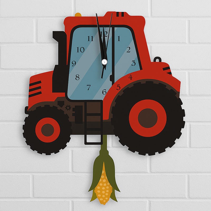 Kırmızı traktörün enerjisini taşıyan bu duvar saati, mekanlara sadece zamanı değil, aynı zamanda emeğin ve doğa sevgisinin hikayesini taşır. Traktör figürünün detaylı tasarımıyla göz dolduran bu model, sade ama etkileyici bir dekor unsuru arayanların favorisi olacaktır.